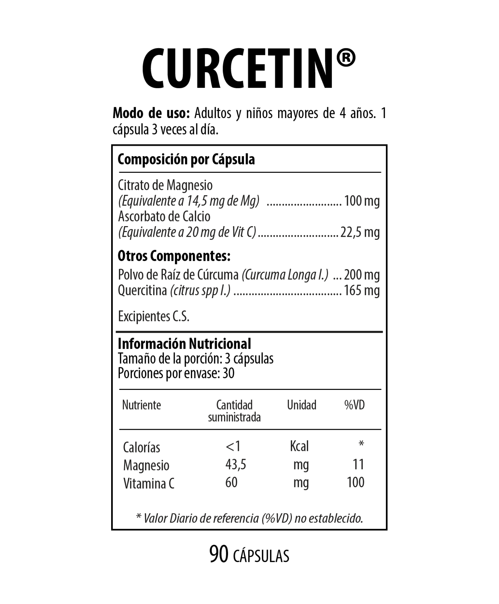 Fórmula con Magnesio, Vitamina C, Curcuma longa l y Quercitina. Es un producto de soporte nutricional cuyo propósito es adicionar a la dieta normal, siendo fuente concentrada de nutrientes y otras sustancias con efecto fisiológico o nutricional.